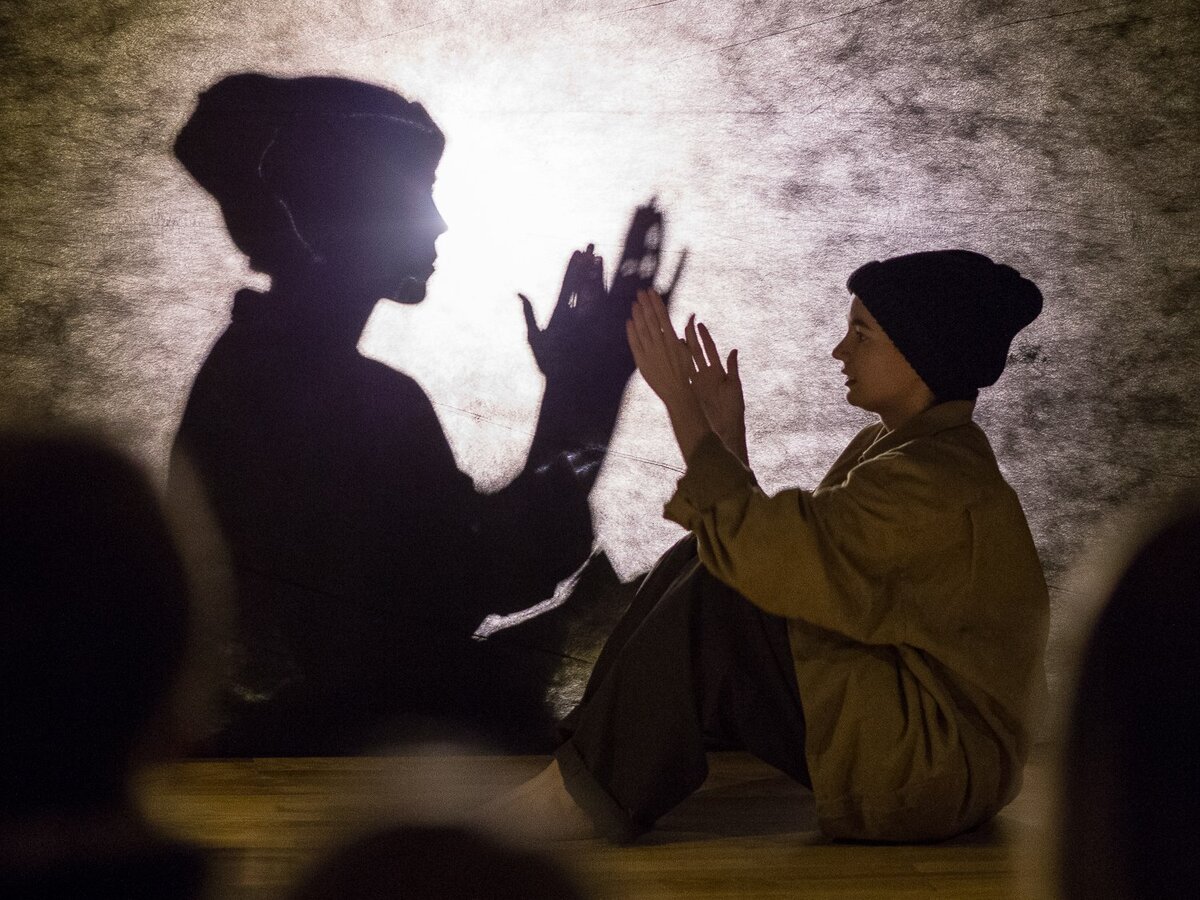Опять посмотрел «Искушение идеологией идиота» в театре «Спичка» Оксаны Половинкиной по великому нашему Ф.М.Достоевскому. Почему его «идиот» искушает? Действительно ведь искушает.... Он... прелестный! Его прелесть прямо перед твоими глазами, в метре от тебя, предстаёт в виде «души идиота»: актриса Катя Спиридонова как маленькая птичка летает по сцене, и слова Достоевского, как прекрасны маленькие птички, глубоко проникают в твою душу. А за шторой маячит тень «идиота», то большая, страшная, то маленькая, боязливая, эту сторону его души, его тайную боль, показывает актриса Галя Ким. В чём магия «идиота» Достоевского? Его «идиот» прелестен как ребёнок, дети - «его товарищи», и мы узнаём в «идиоте» себя, в детстве, и тоже становимся его «товарищами». В «Спичке» этот «прелестный ребёнок» даётся зримо, в образах, и ты видишь вдруг где-то себя на сцене, свою мятущуюся душу в «птичке» Кати Спиридоновой, а твоё тайное, спрятанное за «семью печатями» alter ego, пляшет за шторой тенью Гали Ким.