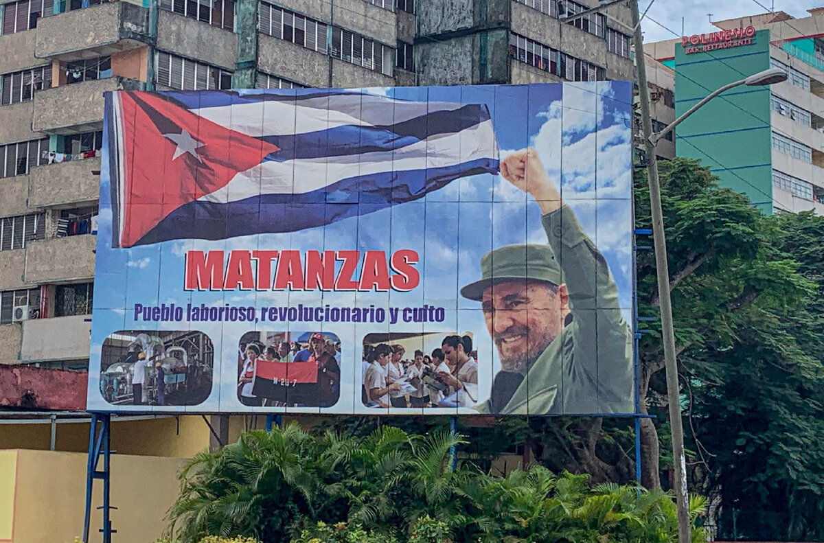 Когда люди попадают на Кубу, мнения сразу делятся на две категории. Одни говорят, что "как же все хорошо у них! И океан есть, и природа, и о деньгах они не думают. Счастливые люди здесь живут!" Но многие видят противоположную сторону жизни: "Нищета, разруха и никаких возможностей для развития у людей, кроме миграции". А что увидите вы? Вот такие плакаты на Кубе встретить можно очень часто. Вариантов героев, изображенных на них, в общем-то всего три: Фидель, Рауль и Че. Ну, и какая-нибудь надпись на испанском, прославляющая кубинский народ, революцию и социализм. АЗС в стране при этом выглядят вот так. Обратите внимание, какие машины сюда приезжают. Половина – старая советская "классика", вторая половина – опять же старая классика, но уже американская годов эдак пятидесятых выпуска. Кубинцы научились удивительно ловко эти машины перебирать по запчастям, чтобы заставить передвигаться в пространстве то, что само по себе двигаться уже не должно в силу возраста. У кого нет денег даже на со