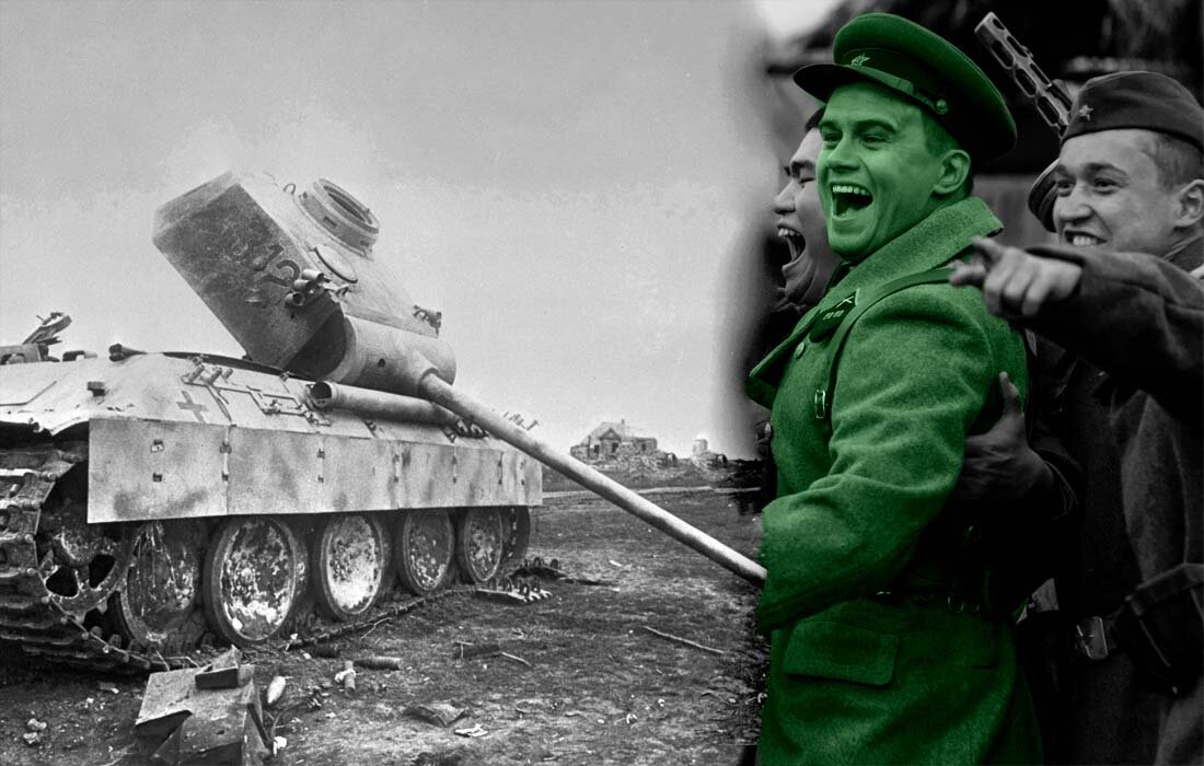 Обескураженные немецкие танкисты решили, что их сейчас сожгут и (или) подорвут, поэтому запросили пощады и сдались в плен.