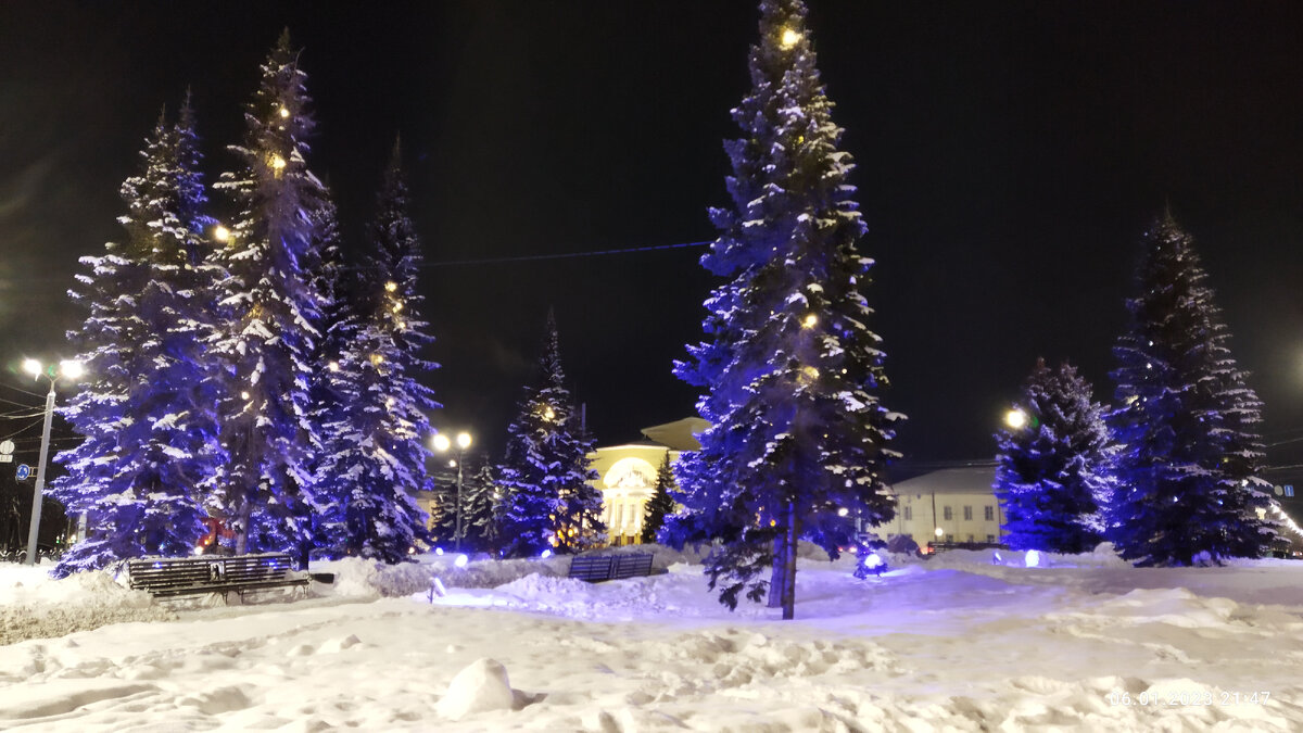 В Ярославле 6-7 января была морозная погода. Вечером у меня намечался поход в театр. А театр в Ярославле – знаменитый театр драмы им. Ф. Волкова, первый русский театр, основанный в 1750 году Федором Волковым. Днем проехались по городу. Рядом с Колесом обозрения увидели современный КЗЦ «Миллениум», около которого и елка была. Знаменитая Стрелка вся в снегу. Зашли в Успенский собор, который красив и снаружи, и внутри украшен к Рождеству. Кафе и торговые центры также празднично выглядят. Большой олень над входом запоминается. К вечеру, когда стемнело, здания в вечерней подсветке и праздничных новогодних огоньках выглядят просто волшебно и сказочно. Театр Волкова притягивает взгляды, вызывает желание зайти внутрь. Что мы и сделали. У нас встреча с прекрасным – веселым спектаклем «Ханума». Театр полон, зрители весело воспринимали каждую реплику актеров, от души радовались. А в антракте любовались интерьерами театра и новогодним украшением. Но подробно в следующей статье. После спектакля я