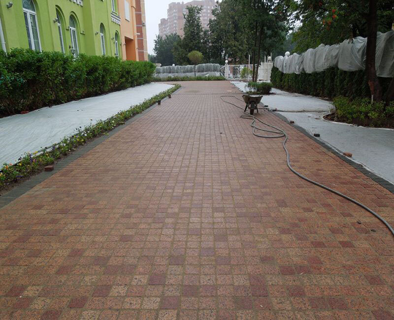 - Полимерпесчанная. Может изготавливаться прессованием и литьем. В составе преобладает песок, также присутствуют красители и полимеры. Плюсы: малый вес, высокая водостойкость, прочность. Может применяться для мощения дорог с высокой транспортной нагрузкой. Минусы: при высоких температурах может расширяться, выглядит менее естественно.