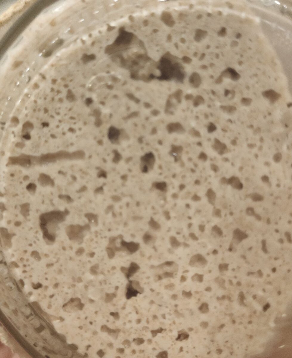 Ее нужно кормить 1/1/2, 1 часть закваски, 1 часть воды и 2 части муки