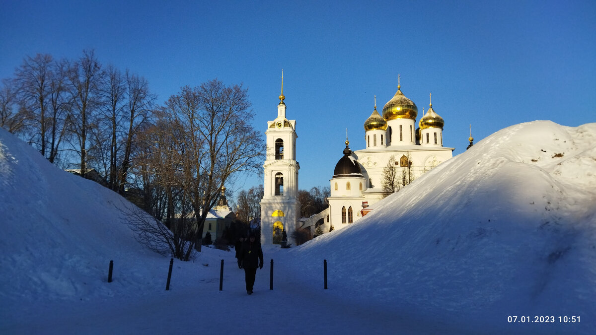 В новогодние праздники съездила на экскурсию в подмосковный город Дмитров. И хорошо, что на экскурсию, а не самостоятельно. Ведь 7 января был такой мороз – 30 градусов. Если совсем замерзали, то бежали в экскурсионный автобус. Но даже в таких суровых условиях удалось немного познакомиться с городом, в котором достаточно интересных достопримечательностей для пытливого туриста.