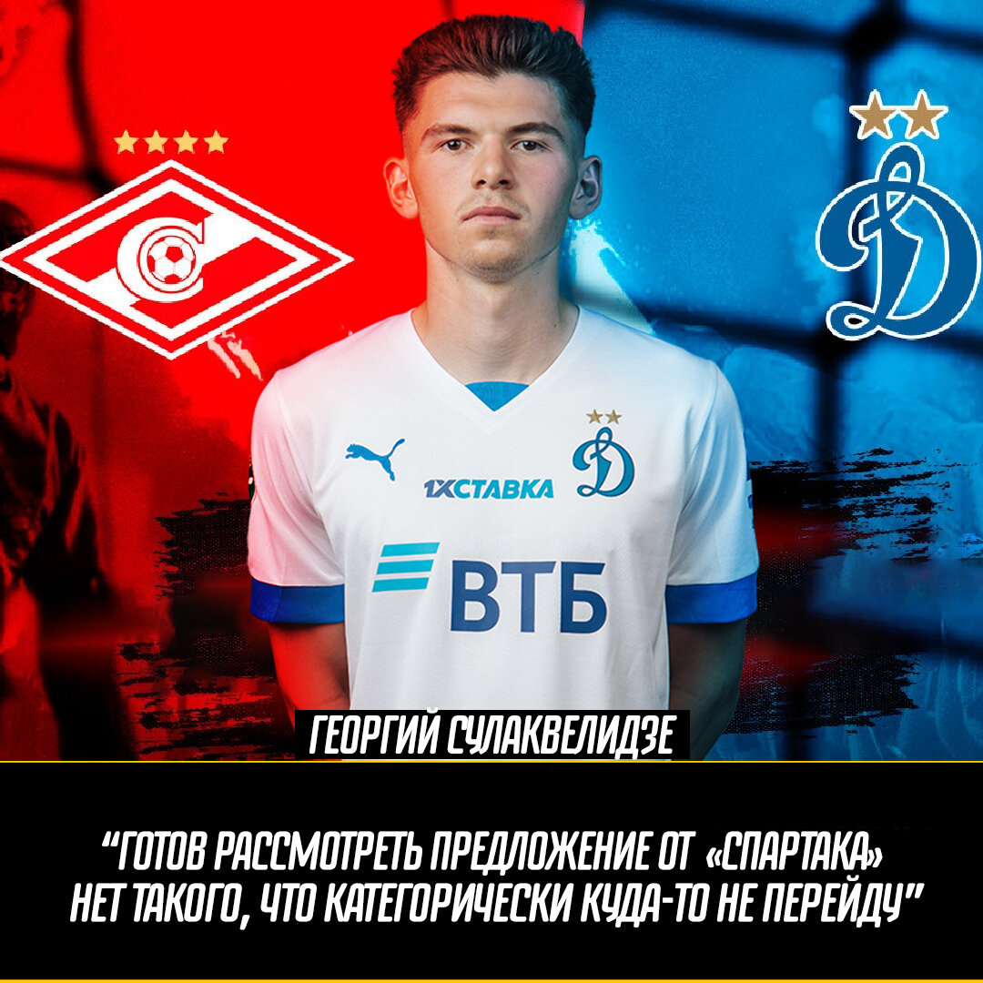 👀 Молодой полузащитник московского «Динамо» Георгий Сулаквелидзе заявил, что готов рассмотреть предложение от других клубов, в том числе от «Спартака».