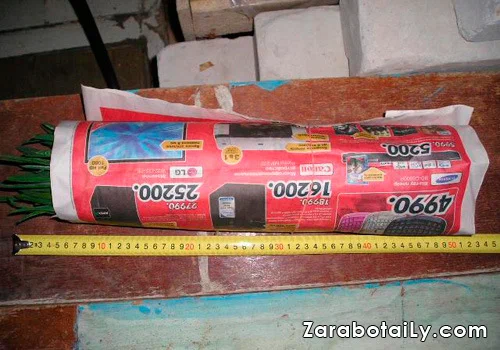 - Упаковать зеленый лук в пучки (тот который вырос), вместе с этим опустить температуру в теплице, упакованный лук лучше держать стоя, например, как у меня — он завернут в газету и стоит, только ножки вырастают от срока стояния — смотрите мою статью.