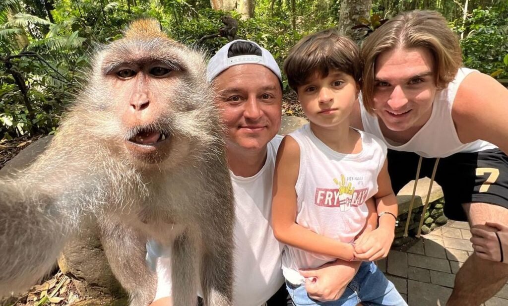 Звезда телесериала «Шторм» Максим Лагашкин отдыхает на Бали с сыновьями уже почти две недели. Первое фото с райского острова актер опубликовал еще первого января. А 2 дня назад, 13 января, Лагашкин поделился новым снимком. Максим с сыновьями посетил Ubud Monkey Forest (Лес Обезьян в Убуде — балийское индуистское святилище и естественная среда обитания балийской длиннохвостой обезьяны Macaca flavicularis). Кадром оттуда звезда «Жуков» поспешил поделиться с подписчиками в социальной сети (у актера около 200 000 фолловеров). «Selfie monkey», — коротко подписал 46-летний артист. Поклонники поспешили оставить под постом множество шутливых комментариев. «Супругу в гриме не узнать 😂», «Три одинаковых носа😂», «Я смотрю на Максима и все равно вижу только участкового из”Жуков”))», «Максим, красавец! Отличного Вам отдыха», «Катерина хорошо вышла😂😂😂», «Мартышка Лагашкина😂», «Фото — супер🔥🔥🔥как будто обезьяна держит камеру и фоткает😂», — написали актеру фолловеры (орфография авторов сохра