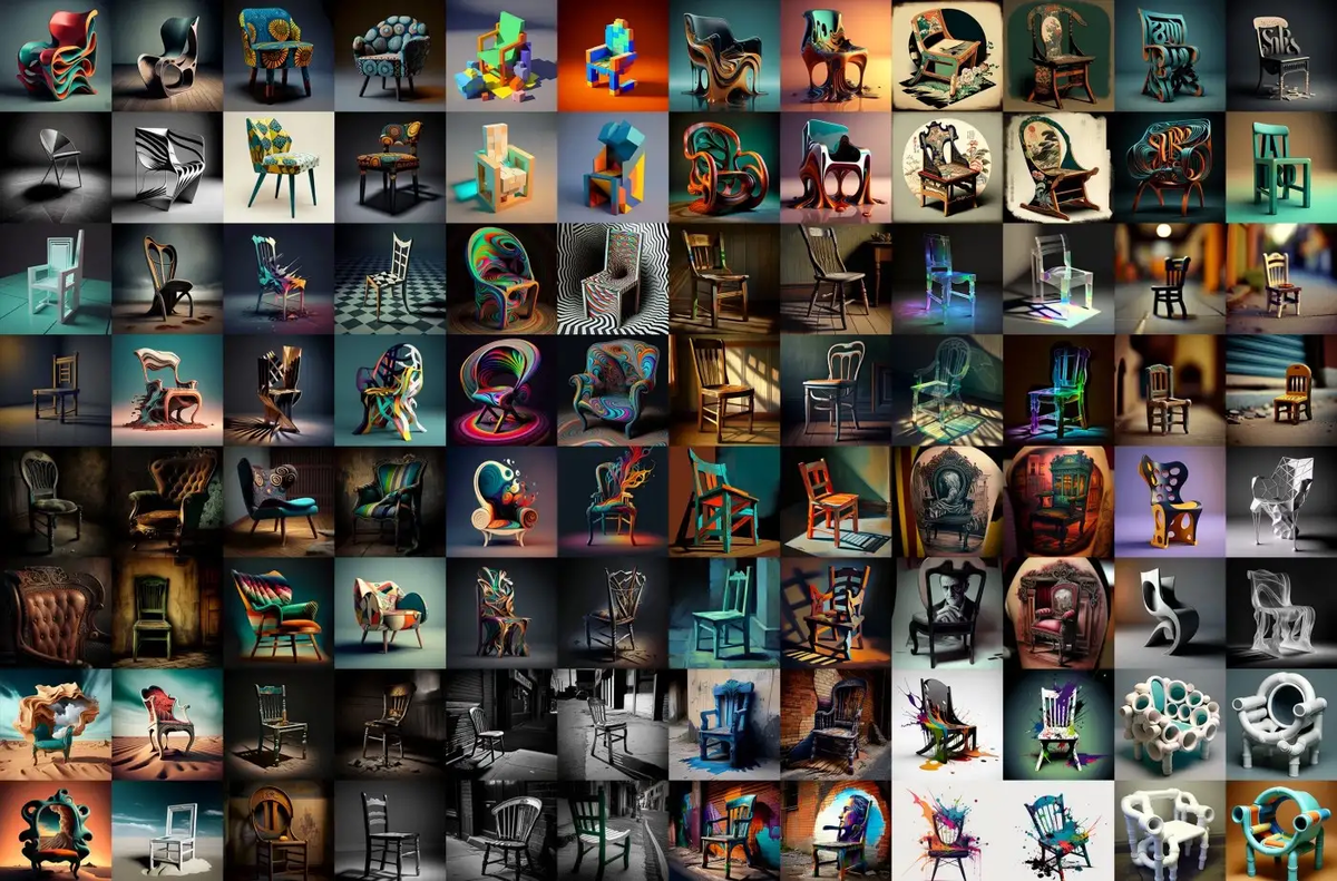 Для этого сравнения стилей стульев я изменил настройки Midjourney так, чтобы качество и стиль были приоритетнее настроек по умолчанию.