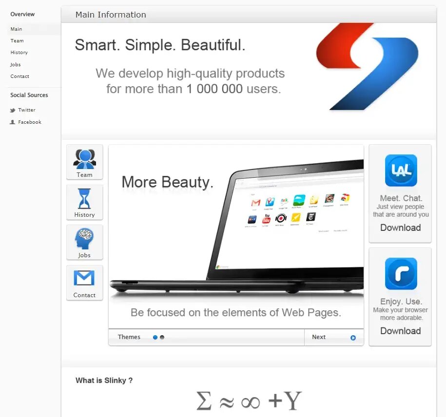 Первые версии сайта Slinky были такими. Скриншоты из архива 2011 и 2012 года. Были и более рание версии, но они по каким-то причинам не сохранились в архиве интернета.