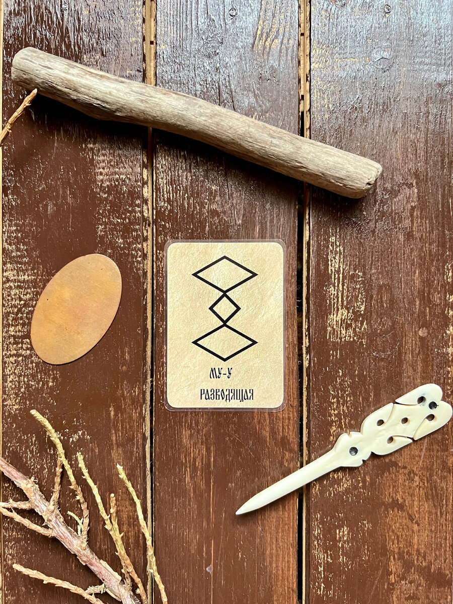 ...Конечно и думать не мог, что предложенный мною знак руны, зацепит глаз Найона и он её добавит в структурный ряд 55. Аверьянов Евгений дал название руне РАЗВОДЯЩАЯ и звуковой код МУ-У... Четно говоря когда руна пришла совместно с другими, я не обратил на неё внимания, просто зарисовал в блокнот. И уж точно особо не надеялся, что её увидит Найон из числа столь огромного материала по возможным рунам. Так, что я думаю на этот счёт: Разводящая, как рефери разводящий по углам... Масло масленное, но одкнако... Разводящий ключ... Обратите внимание на руны трансформации в руне, что является ключевым... В связке с руной КЛЮЧ Явно разные, но схожи в поле применения и в ударной связке с руной РАССЕЯНИЕ. У этих рун почти схожие звуковые кода... Звуковой код РАССЕЯНИЕ : М-У Руна РАЗВОДЯЩАЯ, абстрагирует лица конфликта от проблемы, добавив руну МИР ЛИНИЙ , можно въехать в свою колею... Руна хорошо подсобит как в очищении, так и защите, снося отвалом бульдозера, перед вами деструктивные