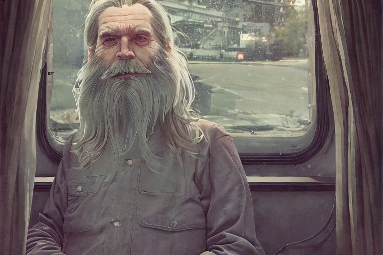 Странно, что я не вскочил в ужасе, не пересел и уж тем более не поспешил сойти. Просто в голову не пришло, что в этом автобусе может произойти что-то плохое. Тем временем из-под сиденья вылезла всклокоченная голова, а за ней и целый мужичок. Бородатый, кряжистый, ростом не выше метра. Забравшись на сиденье, он по-хозяйски устроился. Потом запахнул поудобнее промасленную рабочую спецовку не по размеру, выглядящую на нём как халат, подпоясанный, кстати, обрывком электропровода, и стал меня разглядывать, то и дело почёсываясь и пошевеливая торчащими из-под спецовки пальцами босых ног. Видя, что я не решаюсь заговорить, он взъерошил бороду и спросил:
