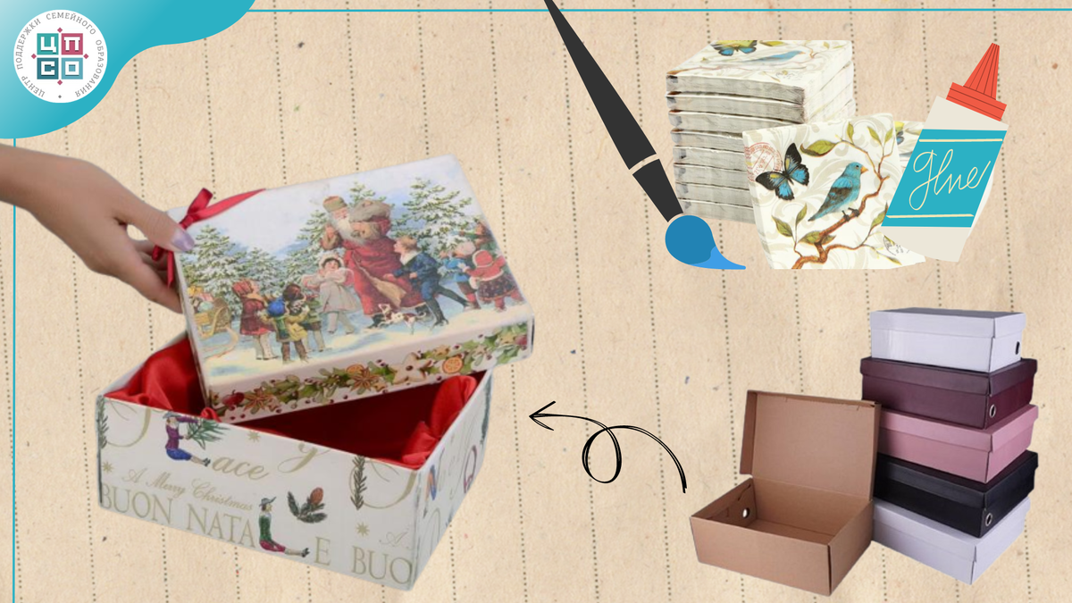 “Зима, холода, снег растает и тогда…” Только зачем же ждать, когда растает снег? Долгие январские вечера – самое время, чтобы отлипнуть от гаджетов и освоить что-то новенькое, полезное, увлекательное. Сколько всего интересного можно сотворить: и то, и это, и вот это обязательно. Главное – получать удовольствие, быть рядом с любимыми и радоваться жизни. Детям нравится творить что-то своими руками. Да и взрослые, если честно, тоже не прочь покреативить. Декупаж Это очень простое и увлекательное занятие. Для творчества понадобятся: Декупаж отлично подходит для декорирования чего угодно: шкатулочки, подставки для карандашей и даже школьные дневники. Всё, что кажется привычным и скучным вмиг становится нарядным и эксклюзивным. Возьмите, к примеру, обычную коробку от обуви. Для начала прогрунтуйте её или обклейте обычной белой бумагой, предварительно скомкайте и смочите лист. И будет очень даже симпатично, если намеренно оставлять шероховатости – в дальнейшем это придаст некий шарм готовому