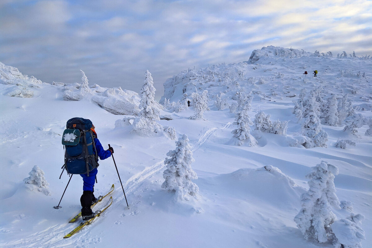 Честно говоря, именно ради таких вот мест, как это вершинное (хочется сказать "волшебное") плато, мы и ходим в лыжные походы по Уралу! Всё самое интересное всегда - выше границы леса. И обязательно после непогоды! Идеально, когда попадаешь на морозец, солнце и полный штиль.