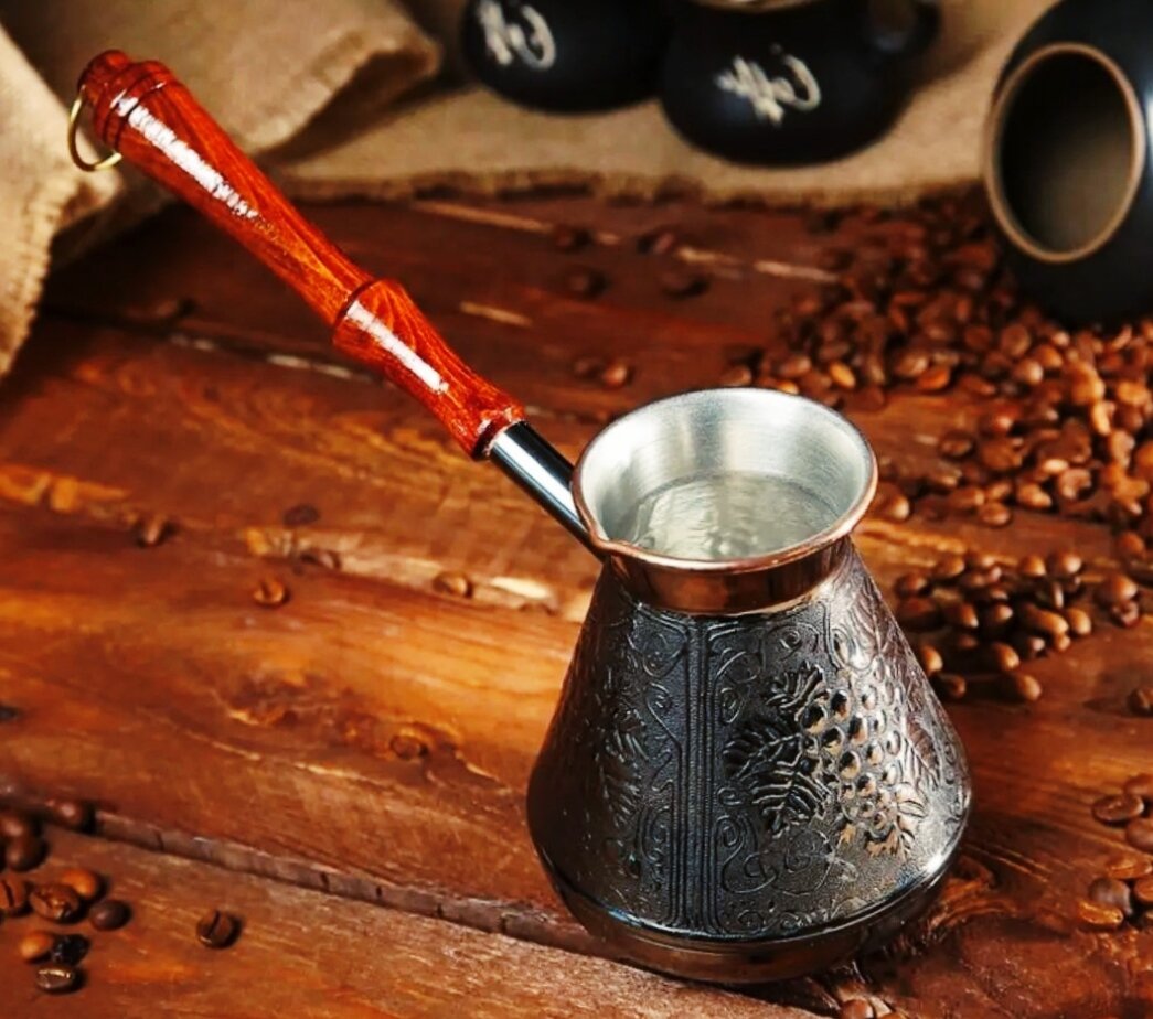 Несмотря на то, что сейчас появилось множество приспособлений для варки кофе, кофейные гурманы почти единогласно сходятся во мнении, что самый вкусный напиток всё-таки получается в турке. Именно он обладает уникальным ароматом и насыщенностью вкуса. В нем наиболее ярко проявляются все тонкости вкуса кофейного зерна. Что собой представляет классическая турка Это у нас сосуд для варки кофе так называется. В Турции же его зовут джезва. Никакой разницы между ними нет. В классическом варианте материалом турки является медь. Сейчас можно встретить сосуды из: латуни; нержавеющей стали; алюминия; серебра. Однако изначальный выбор меди не случает, так как этот металл способен максимально быстро распределить тепло и сохранять его долгое время. Этими же свойствами обладают турки из керамики. Помимо этого в них кофе дополнительно насыщается кислородом и вследствие этого имеет особый вкус. Вот только керамические изделия очень уж ненадёжны. Наилучшим вариантом медной турки является сосуд,
