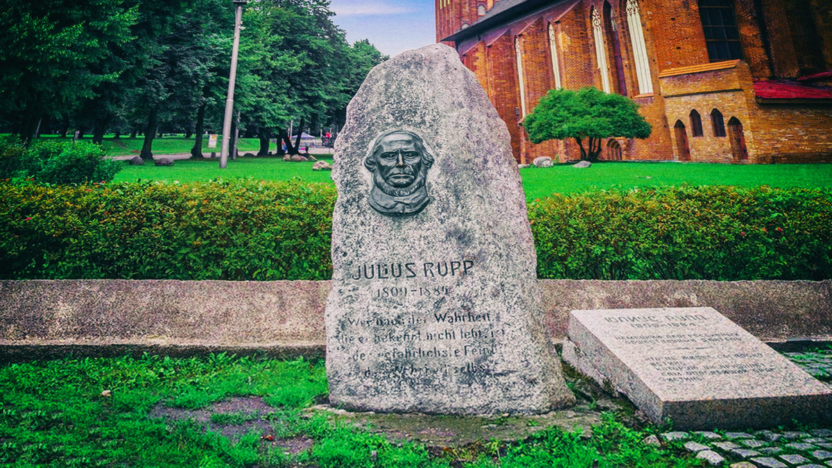 Памятный знак Юлиусу Руппу, установленный рядом с портиком могилы Иммануила Канта у Кафедрального собора в Калининграде, пройти невозможно, поэтому его часто фотографируют туристы, а потом находят довольно скупую информацию в Википедии. Что ж, позвольте рассказать вам историю человека, который стал чуть ли не первым революционером пост наполеоновской эпохи Пруссии. Фридрих Юлиус Леопольд Рупп родился 13.08.1809 г. в Кёнигсберге. Детство прошло в период, когда Пруссия была вассалом Франции, а презираемые солдаты Наполеона ходили по улицам города. Этап взросления уже проходил под влиянием революционного флёра. Юлиус закончил Альштадтскую гимназию, затем постигал теологию и философию в Кёнигсбергском университете. После был отправлен в пасторскую семинарию, которая находилась в сердце лютеранства – городе Виттенберг (здесь Мартин Лютер положил начало ветви христианства, которая стала основной для Прусского герцогства). В 1832 г. Рупп успешно сдаёт экзамен на степень доктора философии. Н