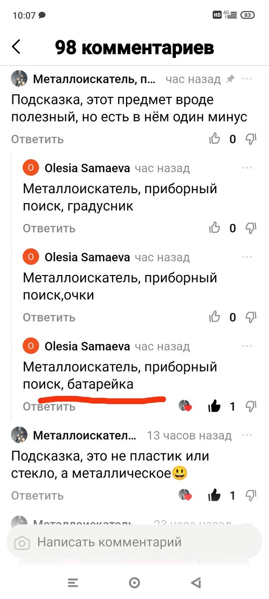 Доброго времени друзья. Вот и завершился конкурс, у нас тут объявился победитель. Загаданная вещь была батарейкой. Есть она в каждом доме, металлическая и третья подсказка там есть минус. Большое спасибо всем кто участвовал, выигрыш победителю уже перевёл Выводы такие сделал, что подсказки надо делать по времени, например в 8 утра, не все могут постоянно контролировать комментарии. А есть ли у вас какие предложения по конкурсу? Может условие другое какое то? Напишите, с удовольствием изучу.