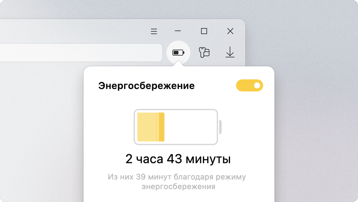 Режим энергосбережения появился в Яндекс Браузере для компьютеров несколько лет назад. Ещё в 2018 году мы объясняли, как режим экономии энергии в Браузере может продлить работу ноутбука больше, чем на час.