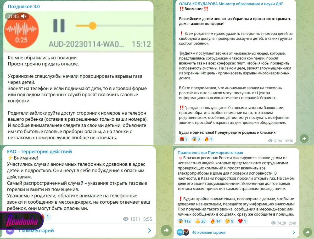 В последние несколько дней распространились многочисленные скриншоты из украинских чатов, а также голосовое сообщение, в котором, женщина цинично убеждает малыша открыть газовые конфорки в кухне, а затем уйти играть в соседнюю комнату. При этом женщина убеждается, что ребенок дома один, и просит его не говорить о звонке своим родителям. Несмотря на то, что видео с голосовым сообщением датировано 2018 годом, украинские спецслужбы все равно используют ту же тактику. Ситуация настолько серьезная, что ряд региональных правительств уже выпустили предупреждения родителям – ни в коем случае нельзя оставлять ребенка одного дома, а также проверять, с кем он общается через телефон, мессенджер и соцсети. В любом случае, судя по всему, ЦИПсО пока не удалось достичь цели и устроить трагедию в России, однако всегда следует быть настороже. Ранее Readovka писала о том, что после фейков об удержании позиций ВСУ в Соледаре западная пресса сменила тактику.