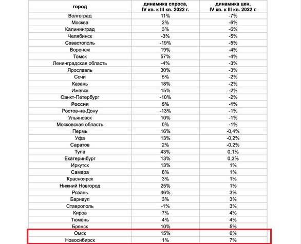 Однако, стоит отметить, вместе с ростом спроса выросли и цены на квартиры в Омске (6%). Таблица: «Авито Недвижимость». «В четвёртом квартале спрос на новостройки в России во многом подогревался окончанием программы льготной ипотеки, о продлении которой стало известно только 15 декабря: до конца года кредит на покупку жилья можно было взять под 7% годовых, а с января 2023 года ставка выросла до 8%. Такая ипотека давала возможность платить относительно небольшие ежемесячные платежи и делала новостройки привлекательнее вторички. Кроме того, положительно повлияли на спрос программы беспроцентной рассрочки на несколько лет, субсидированная ипотека с низкими фиксированными ежемесячными платежами и новогодние с