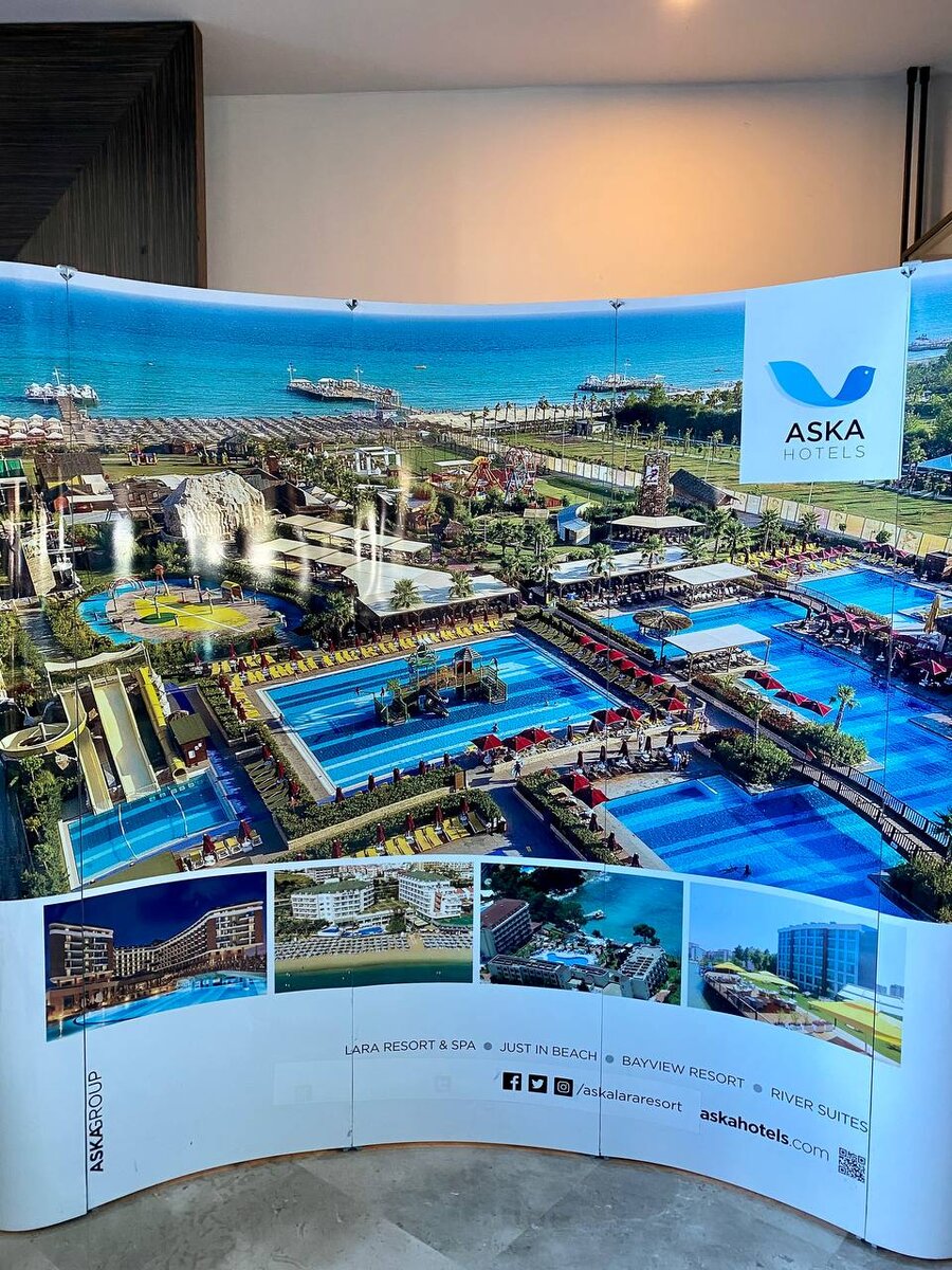 🇹🇷Aska Lara Resort & Spa 5* Отель разделен на две части. Первая - сам отель и небольшая прилегающая территория с бассейном. Вторая через дорогу - большая аквазона с аквапарком, детским клубом и пляжем. Отель больше подойдет для взрослой аудитории, так как с детьми топать через дорогу на пляж не очень удобно (есть трансфер). Вечером в баре народ выпивает, собираются компаниями и по ощущениям хорошая, добрая атмосфера. К примеру в Limak Atlantis был алкогольный ужас, орущие бегающие дети, падающие со стульев взрослые, драки в соседних номерах, а в Aska Lara все очень показалось приличным) 🛋 В отеле 545 номеров. Номера ⁃ Стандартный номер Площадь от 18 до 24 м². Одна двухспальная или две односпальные кровати. ⁃ Семейный номер Площадь от 40 до 48 м². Две спальни в одной двухспальная кровать, в другой две односпальные кровати. ⁃ Номер Коннект Площадь от 40 до 48 м². Номер состоит из двух полноценных номеров категории Стандарт, объединенных межкомнатной дверью. ⁃ Люк