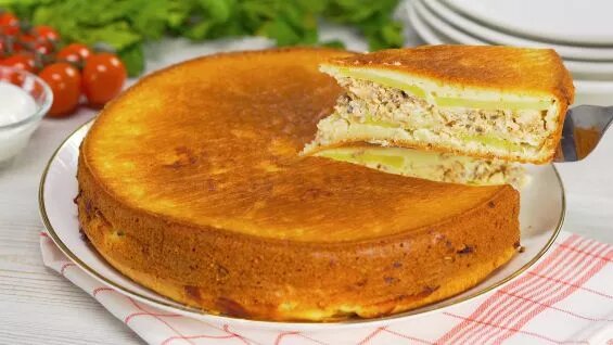 Дома или на даче всегда найдется пара баночек рыбных консервов, именно они необходимы для приготовления изумительного заливного пирога. Вам не понадобится кулинарных навыков или особенных продуктов, а вот результат превзойдет все ожидания! Время приготовления: 50 минут Количество порций: 6 Калорийность: 188 kCal Ингредиенты Как приготовить рыбный заливной пирог