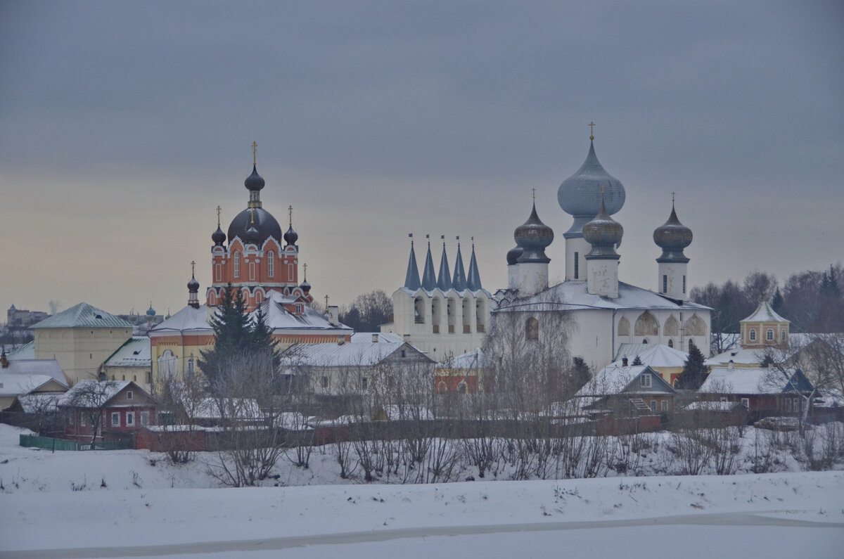 Тихвин находится примерно в трёх часах езды от Петербурга - это если без пробок и с соблюдением скоростного режима. Мне доводилось много раз бывать в этом городе, но в основном проездом. А этой зимой мы наконец решили задержаться в Тихвине с ночёвкой, чтобы неспешно прогуляться по городу, заглянуть в музеи и, конечно же, в монастыри. Собственно, с них и начнем наше знакомство с городом.