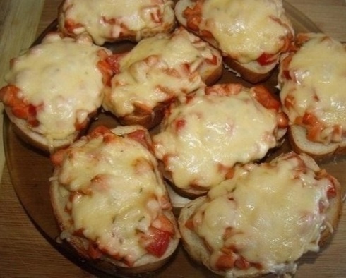 Ингредиенты: Сосиски — 3-4 Штук Помидор — 1 Штука Чеснок — 2 Зубчика Майонез — 1 Ст. ложка Кетчуп — 3 Ст. ложки Хлеб пшеничный — 10 Ломтиков Сыр — 100 Грамм Зелень свежая — По вкусу Перец черный молотый — По вкусу Приготовление: Сосиски нарезаем мелкими кубиками и выкладываем в глубокую миску. Помидор так же нарезаем кубиками, зелень мелко шинкуем и добавляем в тарелку к сосискам. Выдавливаем чеснок через чесночницу. Майонез и кетчуп выкладываем к остальным ингредиентам и все тщательно перемешиваем. На противень выкладываем хлеб и на каждый кусочек выкладываем по 1-1,5 ложки начинки. Сверху посыпьте черным молотым перцем. Сыр трем на крупной терке и посыпаем им каждый кусочек, но не следует добавлять слишком много сыра, так как он в процессе запекания будет растекаться по противню. Ставим бутерброды в заранее разогретую духовку на 15 минут.