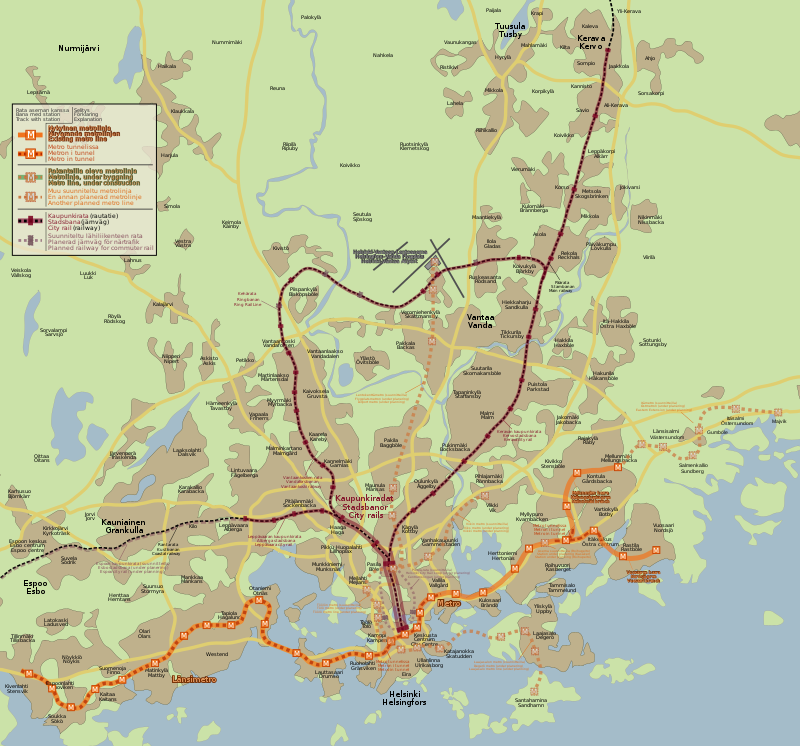 Сегодня хочу показать как железнодорожную связь выстроила финская столица для авиагавани “Вантаа”. Небанальный, эффектный проект с поездами Stadler в качестве подвижного состава. До пандемии хельсинкский аэропорт вышел на пассажиропоток почти в 21 миллион пассажиров в год, прибавляя примерно по миллиону в год. В 2009-м, когда железку начали строить, их уже было 12,5 миллионов – эта прорва людей добиралась в “Вантаа” автобусами, такси и личными автомобилями. Я хорошо помню свой опыт года эдак 2012-го или 13-го: каждые десять минут от центрального вокзала финской столицы отправлялся битком набитый автобус, чуть не час добиравшийся до дверей терминала. Железнодорожную систему изначально было решено интегрировать в “городскую электричку” Хельсинки. Новая линия была задумана кольцевой с движением поездов по часовой и против часовой стрелок. Наиболее удаленные точки кольца на севере и юге, соответственно, аэропорт и вокзал, поэтому пассажиру, отправляющемуся в дорогу, по сути все равно, в ка