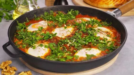Чирбули- это кулинарный шедевр грузинской кухни, который сделает ваш завтрак особенным. Казалось бы, яичница с соусом из помидоров и грецких орехов, с пряностями и специями, но в результате получается настоящее кулинарное чудо - чирбули, которое смело можно назвать - яичница моей мечты! Время приготовления: 20 минут Количество порций: 3 Калорийность: 98 kCal Ингредиенты Как приготовить чирбули по-аджарски
