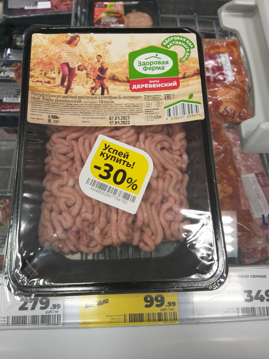 Ну вообщем-то с чего начать.)) Искала я на чем же можно сэкономить,т.к. этот месяц по финансам душит. Пришла к тому, что попробую всё таки на продуктах. Так вот, цель готовить не то что я хочу или люблю, а то что есть в магазине по скидкам. После работы я лечу сразу в детский сад и в супермаркет не успеваю. А если с ним идти, то это надолго и обязательно начнет просить что нибудь бесполезное. Придумала, буду ходить в обеденный перерыв. Я не хожу в кафе или на бизнес-ланчи, ношу свою еду. Салатики в кулинарии тоже покупать не выгодно, беру помидоры-огурцы на развес. Сегодня в обеденный перерыв я смогла пройтись только по Магниту. Магнит очень маленький. Что было со скидкой? Фарш со скидкой 69 рублей. Что угодно можно приготовить.)) Только есть одно НО. 😕 Он из свинины, а я не ем свинину от слова совсем. Многие когда узнают, мол в чем причина, религия что ли? 😄 Я просто не переношу вкус свинины, а еще вкус речной рыбы. У всех разные вкусовые антипатии, у меня такие. Далее, снова
