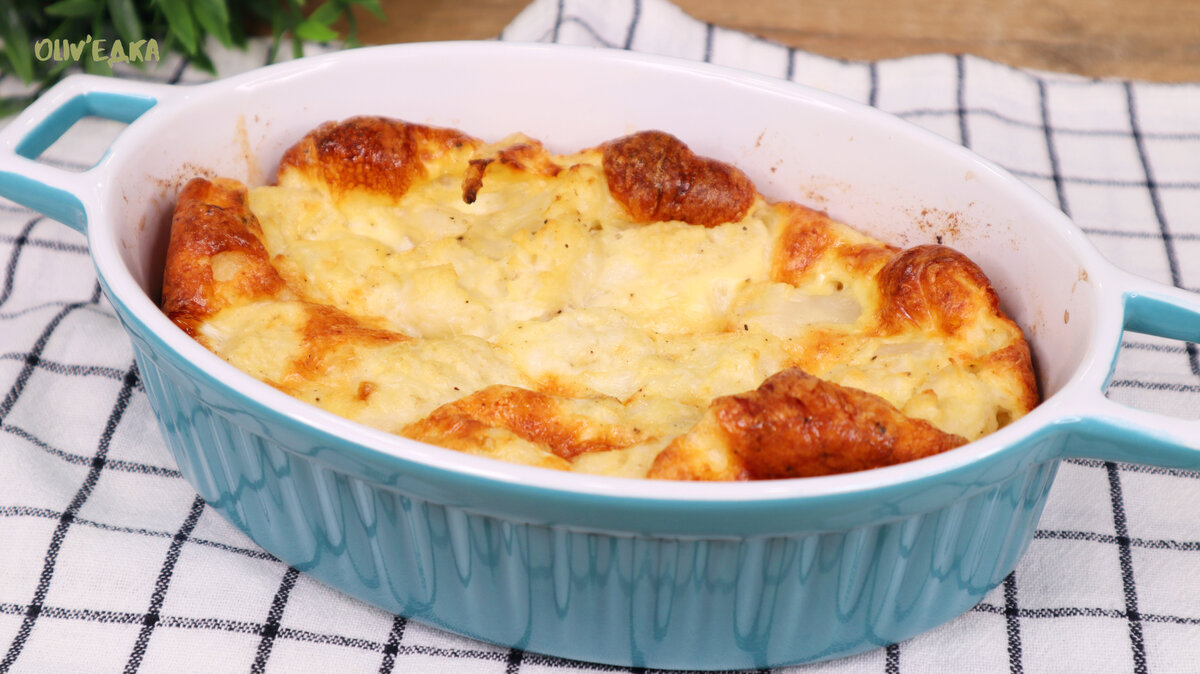 Чтобы быстро приготовить такую запеканку с цветной капустой или брокколи на завтрак, вечером заранее отвариваю капусту, а утром просто заливаю яйцами, пока собираюсь, омлет уже успевает приготовиться в духовке.