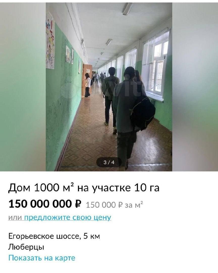 Забавная и абсурдная история приключилась в подмосковных Люберцах. На Авито появилось объявление о продаже огромного дома – 1000 кв.м на 10 га. Продавец просил 150000 рублей за квадратный метр. Однако при детальном изучении достоинств объекта выяснилось, что это… школа! При чем не какие-нибудь руины, ремонтировать которые руки не доходят, а вполне себе обычное образовательное учреждение, в котором дети учатся. Даже фотографии внутреннего интерьера не позволяли выдвигать какие-либо другие варианты. В местных пабликах поначалу гадали, кто такой «умный» остряк-самоучка. Оказалось – дети! Представьте себе, дети натурально выставили школу на продажу! Им так долго твердили, мол, «школа – второй дом», что некоторые, твердо уверовав в этот постулат, решили монетизировать излишки имеющейся недвижимости. Рассудили мудро: дом, дескать, и так имеется, ни к чему барствовать и недвижимостью обрастать, поэтому продать все, пока есть возможность. Ну, шучу, шучу… Разумеется, что там думали себе дети,