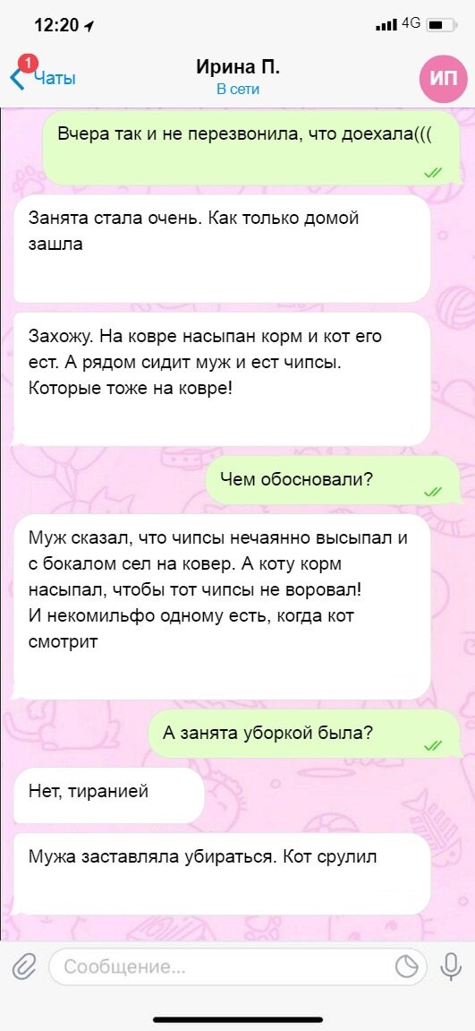 Банальная, казалось бы, ситуация: муж остался наедине с котом... А сколько различных вариантов развития событий! Сегодня для Вас переписки именно об этом: о том, как мужчина и кот остались дома одни... на какое-то время. Вот такая мужская дружба! И сообразительность. Еще одна переписка - про плохой инструктаж. Главное, с котиком все хорошо) Кот-то сам себе еду не приготовит. Хотя... смотря какой кот. Но, возвращаемся к перепискам. Еще одна переписка о том, что излишнее рвение очень часто имеет какую-то причину. Всё равно муж - молодец! Сам загрязнил кота, сам помыл. Следующая переписка... читайте сами. Просто смешно. Не такая уж и беда, если Ваше место в спальне занято котом. Котик-то подвинется) И напоследок переписка об одном очень запасливом коте. Мало ли на сколько хозяйка уехала... Улыбайтесь каждый день! И читайте также: Здоровья Вам и Вашим питомцам! Спасибо за внимание к каналу "Собачья жизнь"! Не забудьте подписаться. Ваша #юмор #истории из жизни #смешные переписки #коты #кот