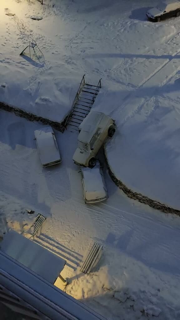 Курьезное ДТТП в Черемушках. Одна машина оказалась на крыше другой. Именно такую картину увидели автовладельцы с утра, когда вышли во двор.