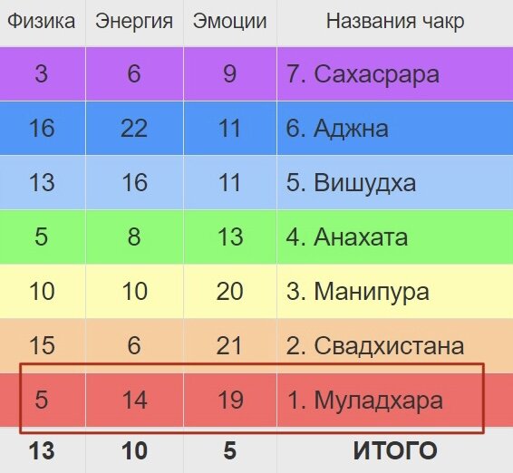 Чтобы понять в чем заключается ваша сила, ваша опора необходимо рассчитать свою матрицу судьбы и обратить особое внимание на таблицу с чакрами. Нас интересует Чакра Муладхара, так как это корневая чакра и соответственно она является опорной. Рядом с ней мы видим три энергии или три Аркана. Каждый из которых можно расшифровать и получить свой уникальный код внутренней опоры.