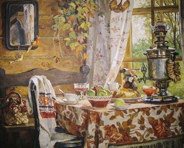Таська открыла форточку и засуетилась, загремела чашками и кастрюлями, и на деревянном круглом столе, накрытом праздничной скатертью, появилась большая фарфоровая супница с дымящимся борщом, хрустальная ваза с овощным салатом, блюдо с жареной курицей и запеченным картофелем, щедро присыпанным зеленью, а также пирожки, свежеиспеченный хлеб, конфетки, пряники.