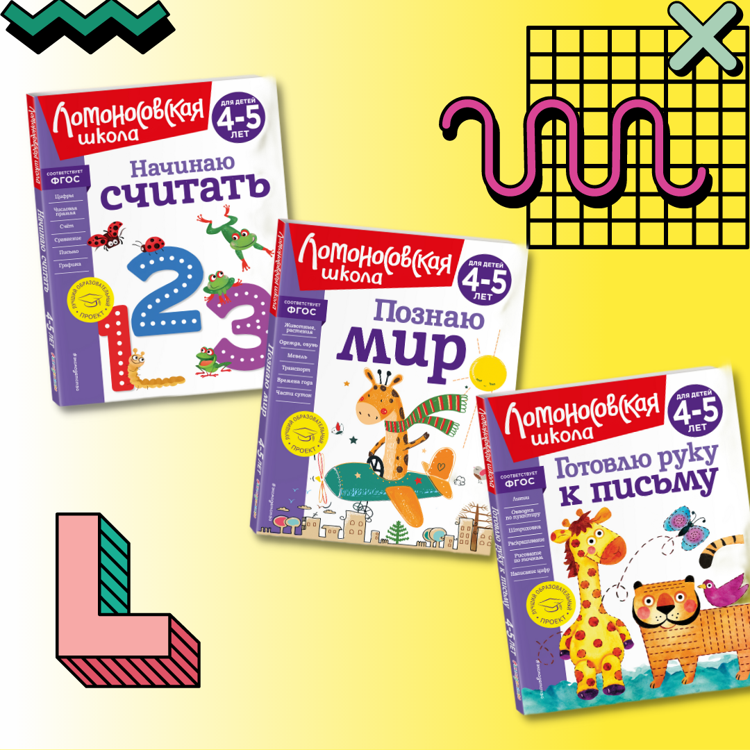 Какое пособие выбрать среди тысячи возможных, чтобы подготовить ребенка к школе? Серия «Ломоносовская школа» ― это элитное образование, которое теперь доступно каждому ребенку. Она разработана в команде со специалистами частной московской школы и учитывает возрастные особенности детей и современные образовательные стандарты. Рассказываем об обновленной версии годовых курсов, созданных с заботой о будущем развитии ребенка. Преимущества линейки Дети, прошедшие дошкольную подготовку от педагогов Ломоносовской школы, быстрее и легче адаптируются к школе. Пособия соответствуют требованиям ФГОС, основаны на авторской методике комплексного развития ребенка и задействуют в процессе обучения навыки говорения, слушания и письма. Книги подходят для индивидуальных и групповых занятий. Чтобы не утомить ребенка, каждый урок занимает 20-25 минут. Для детей 4-5 лет В курс входят книги «Познаю мир», «Начинаю считать», «Узнаю звуки и буквы» и «Готовлю руку к письму», которые направлены на то, чтобы удов