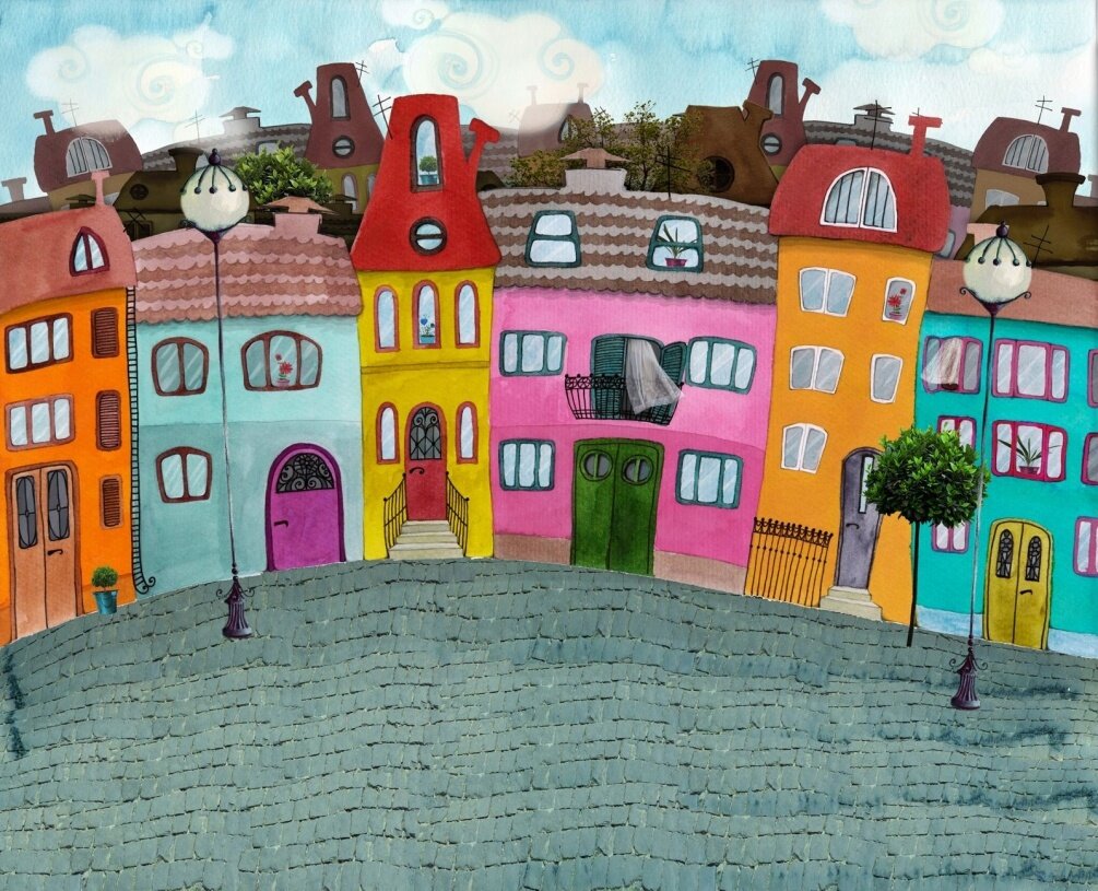 Вот прям такие же нарисованные, кривые, несуразные, нелепые, так же близко стоят как на смешной картинке в мультике, только в реальности и туда можно зайти и поудивляться)) ну, и там люди живут)