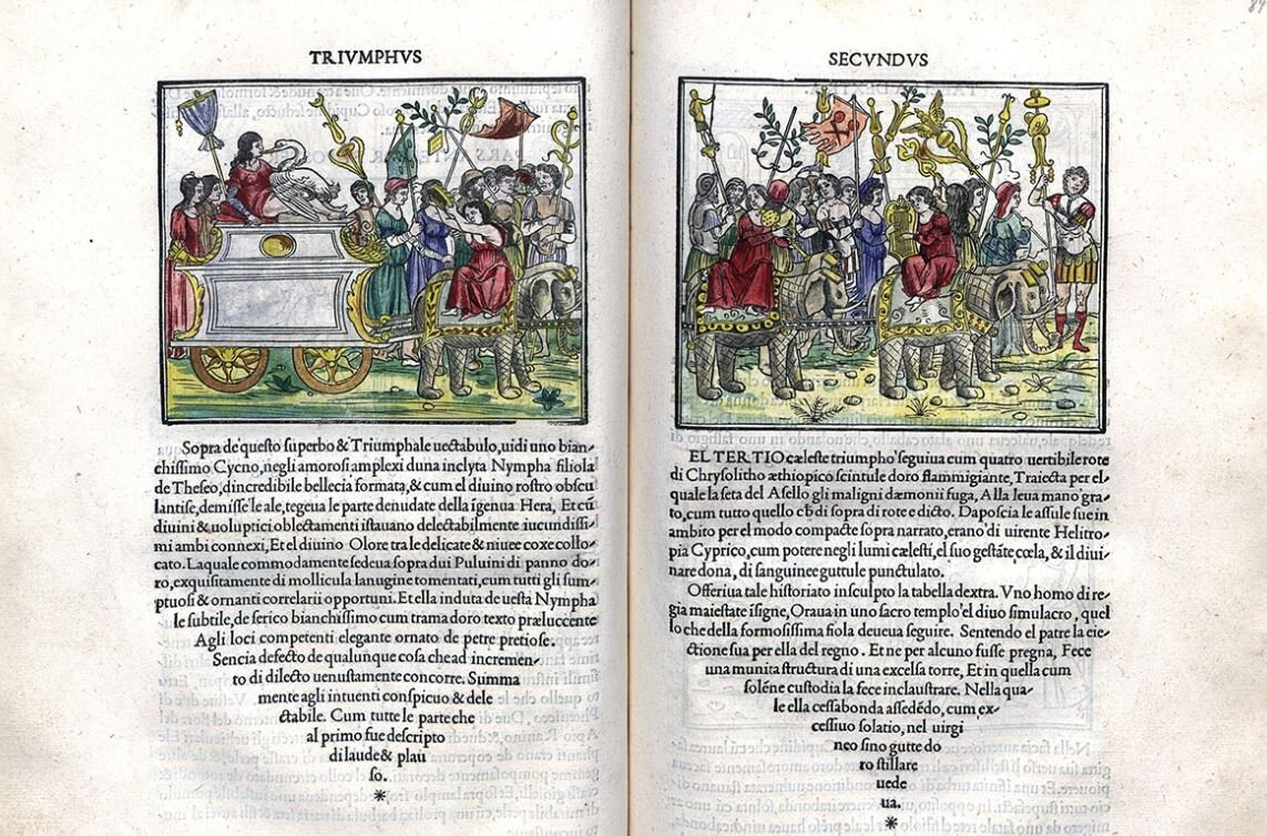 Роман эпохи Возрождения, впервые изданный Альдом Мануцием в 1499 году, примечателен тем, что это единственное иллюстрированное издание, отпечатанное типографией Альда.