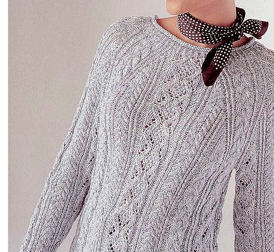 Косы – самый популярный вариант оформления края регланной полосы. Ширина косички может быть любой. Петли незаметно убавляются изнаночными петлями до или после косы.