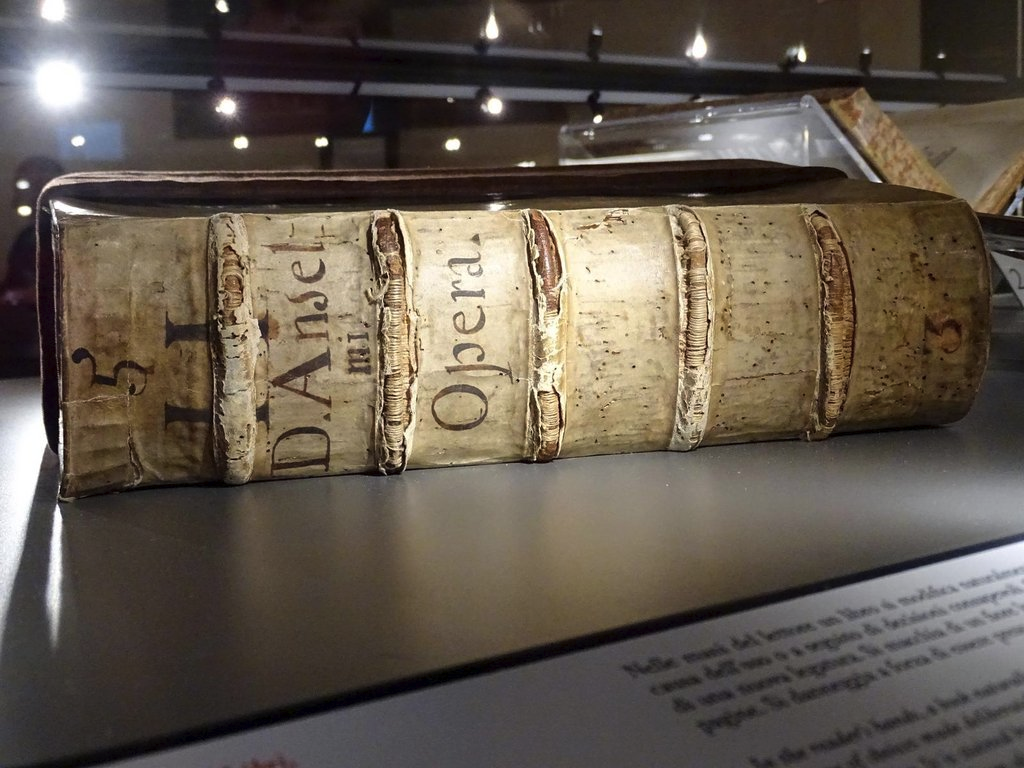 Этой статьёй я хотел бы открыть новую рубрику, где собираюсь рассказывать (сюрприз!) о книгах. Но не о тех книгах, которые кое-кто любит держать в руках, а кое-кто - закачивать на электронные устройства. Нет, рассказ будет о книгах глазами тех, кто их создаёт: иллюстраторов, верстальщиков, печатников (и, конечно, писателей с переводчиками, куда же без них). А называться новая рубрика будет "Переплёт". И, так сказать, для затравки расскажу я вам о крайне необычной книжной выставке, на которой мне удалось побывать - правда, уже почти 4 года назад. Но выставка была действительно интересная. Да и просто похвастаться, как без этого... В общем, гуляя однажды по замку Сфорцеско в Милане, мы обратили внимание на странную книгу в человеческий рост: "Avvertenze necessarie e profittevoli a’ Bibliotecarj, e agli Amatori de’ buoni Libri" ("Необходимые и полезные советы о мерах предосторожности для всех библиотекарей и любителей хороших книг") - вот что на ней было написано. Не очень-то обнадёжив