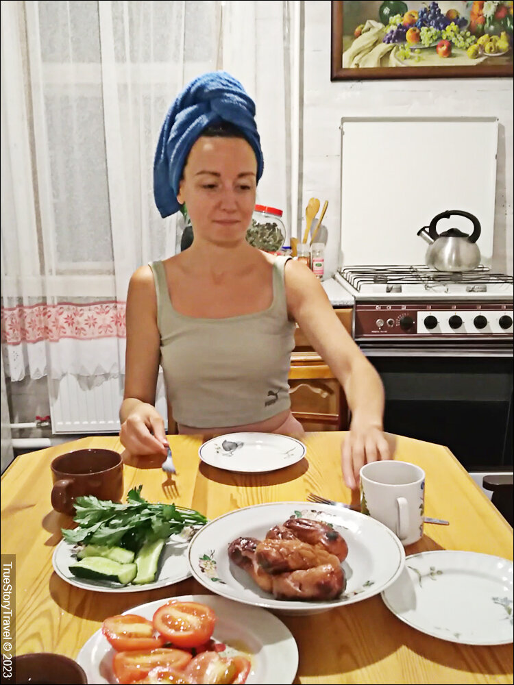 Затем на базаре в райцентре купили домашних продуктов - творог, масло, сыр и молоко. А также взяли картошки и яблок.