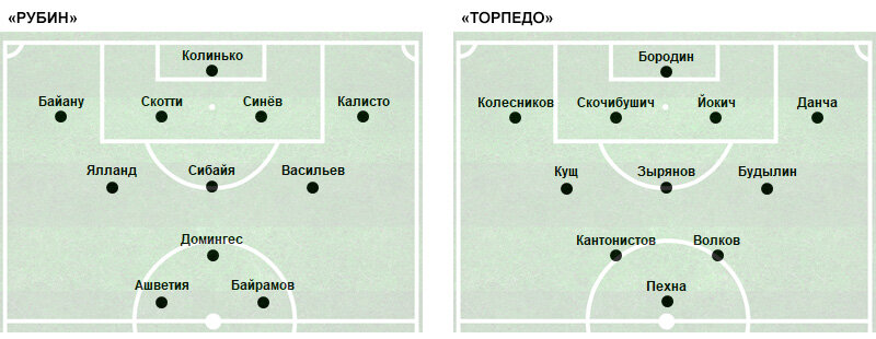 «Торпедо»: Бородин (Кабанов, 36), Скочибушич, Йокич, Колесников (Ленцевич, 61), Кущ (Мамаев, 55), Данча, Волков, Зырянов - к, Будылин, Пехна, Кантонистов.