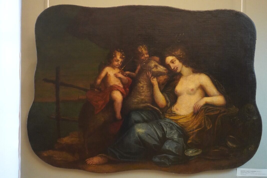 В рубрике « День шедевра» представляем интерьерный триптих. Его можно увидеть в Рязанском художественном музее на выставке западноевропейской живописи 16-19 веков. Неизвестный художник создал десюдепорт. Это декоративная композиция, которая располагается над дверью дворцовых интерьеров и вписывается в общее интерьерное решение стен и потолков. Десюдепорт создаётся, как живописное панно, но также может быть выполнен из других объёмных и рельефных материалов, таких как дерево, глина, гипс. Простор для темы дают мифологические образы, в иносказательной форме рассказывающие о хозяевах дома. В Рязанском художественном музее представлено три десюдепорта, которые объединены образом античной богини любви и красоты. В центральной части Венера окунает стрелу в любовное чудодейственное зелье и передаёт её своему верному спутнику Амуру, складывающему стрелы в колчак, чтобы отправиться с ними к людям и поразить их сердца любовью.