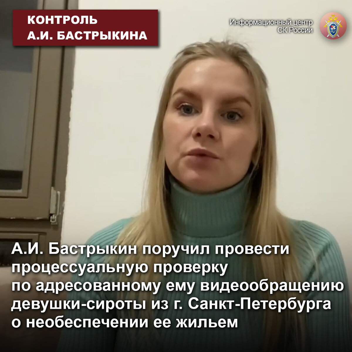Председатель Следственного комитета Российской Федерации Александр Иванович Бастрыкин поручил и.о. руководителя ГСУ СК России по городу Санкт-Петербургу Олегу Валерьевичу Бобкову провести процессуальную проверку с учетом всех доводов обращения и представить подробный доклад о ее ходе и результатах, а также принимаемых мерах к восстановлению прав девушки-сироты.
