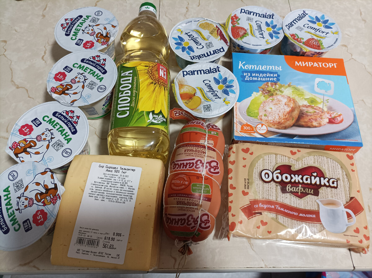 С вами мама 3-х детей (14, 6 и 5), пишу о своей жизни в провинциальном городе: экономии и семейном бюджете, покупках, расхламлении, ремонте, путешествиях, развитии и воспитании детей, а также делюсь своими мыслями, рецептами и наблюдениями. Пытаемся уложиться на питание в 20-25 тыс в месяц на пятерых, у кота отдельный расчётный счёт))), при этом питаться полноценно, вкусно и полезно! Приветствую, всех заглянувших! Перед Старым Новым годом, нужно было зайти в магазин за мясом, потому как собирались на шашлыки, наша задача была купить мясо для всех. Поехали в пятницу вечером в гипермаркет за мясом... Ну и тут Остапа понесло! Вот, что из этого получилось: Сметана 180 гр по 25 руб получилось очень выгодно, мало взяла))), масло растительное -100 руб, цена обычная, у нас запас закончился, буду потихоньку пополнять, сыр Тильзитер 906 гр за 444 руб, взяла обычный, необычного наелись, а сыр у нас улетает с молниеносной скоростью, особенно, после того, как младшие дети стали сами делать себе бу