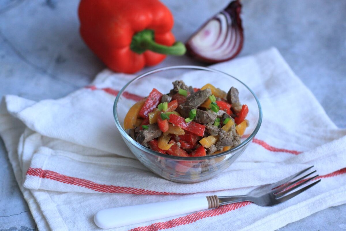 Как и наши коты - куриную печенку мы любим. Раньше я ее, как правило, тушила или жарила, обходя стороной салаты. Ой, а зря! Вышло очень вкусно. Сам по себе он простой, но особый кулинарный шарм добавляем ему заправка. Репчатый лук мелко нарезать и обжарить на растительном масле 5 минут. Печень промыть, нарезать небольшими кусочками. Добавить в сковороду к луку и готовить до готовности - минут 10-15. Перец нарезать соломкой, красный лук нарезать полукольцами. Выложить в салатник. Для заправки смешать бальзамический уксус, масло, сок лимона, мед и чили. Добавить печень в салатник, залить заправкой и хорошо перемешать. Дать настояться несколько часов в холодильнике. Приятного аппетита! Ингредиенты 500 г куриной печени 2 сладких перца 1/2 красной луковицы 1 луковица растительное масло для жарки Для заправки: 2 ст. л. бальзамического уксуса 2 ст. л. оливкового масла 1 ч. л. жидкого меда 0,5 ст. л. сока лимона щепотка молотого чили