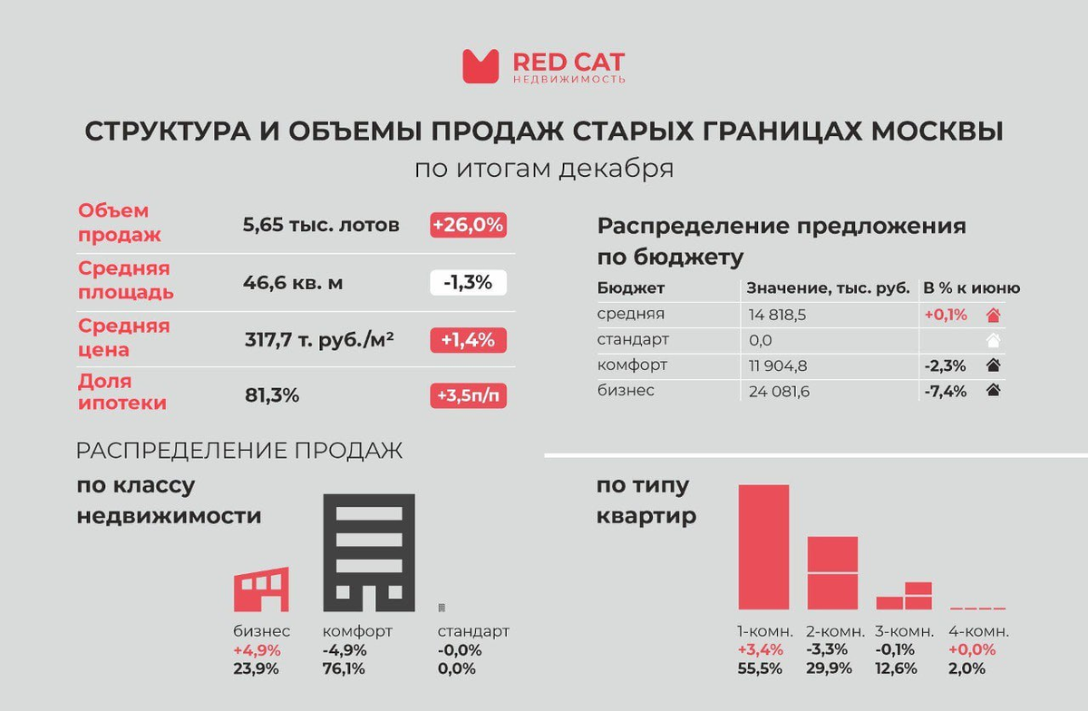 Динамика и структура продаж в Старых границах Москвы по итогам декабря
