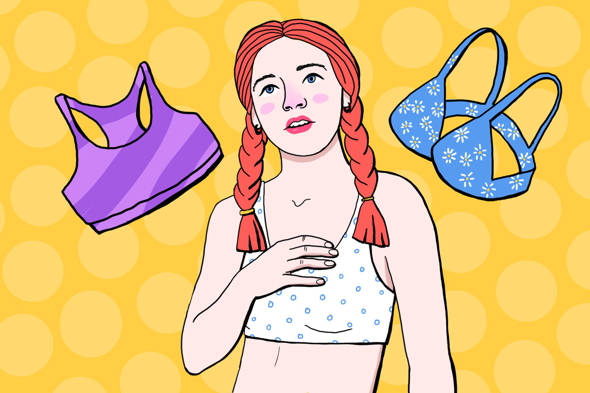 Во время пубертата подростки сталкиваются с огромным количеством вопросов. Бывает сложно понять, какие симптомы нормальны, а какие нет. Рассказываем, что происходит с девушками во время роста груди, можно ли повлиять на её размер и как выбрать первый бюстгальтер. Когда начинает расти грудь? Обычно рост груди начинается в возрасте от 8 до 13 лет. Это один из первых признаков пубертата. Сначала набухают соски. Становятся заметнее тёмные круги вокруг них, которые называют ареолами. Постепенно формируется железистая ткань. Примерно через два года после начала роста груди у девочек случаются первые месячные. К 17–18 годам грудь полностью формируется и становится округлой. Впрочем, её размер может меняться. Например, грудь немного набухает перед месячными. Увеличивается из-за приёма гормональных контрацептивов или во время беременности и кормления грудью. Также размер груди может изменяться, если девушка набрала или сбросила вес. Но это не обязательно. Что может чувствовать девушка во время
