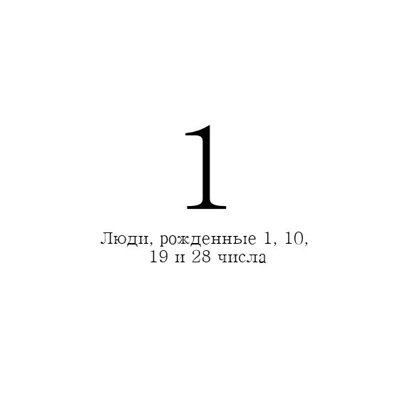Планета управитель- Солнце. Ключевая тема: самопознание и нахождение себя. Цвета - золотой, красный. Короли и королевы, всегда привлекают внимание, яркие, самоуверенные лидеры, им всегда сопутствует успех, любят новизну и свободу, пытаются всегда использовать новые методы и технологии. У единичек на первом месте они сами, их желания, однако для людей с датой рождения 10 числа любого месяца может быть совершенно противоположные вибрации, а так же у тех, а также в случае подавления родителями в детстве. На любой вопрос всегда есть СВОЕ мнение, которое практически невозможно изменить, ведь они единицы, а значит всегда правы. Яркие, инициативные люди, которые постоянно движутся вперед, готовы помогать в развитии и движении окружающим, лидеры, способные заставить других усердно работать под их руководством. Кармическими задачами единички являются: В негативном проявлении могут быть резкими и раздражительными, высокомерными и капризными. Люди единицы самодостаточны, может совершенно спокойн