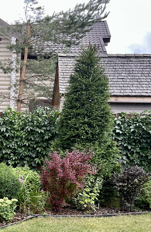 Когда пустой участок начинаешь сажать все подряд. Я это знала, на примере соседей, которые насажали сосен из леса. Но все равно лесных елочек посадили по забору и за забором, чтобы закрыли нас от посторонних взглядов проходящих мимо соседей.